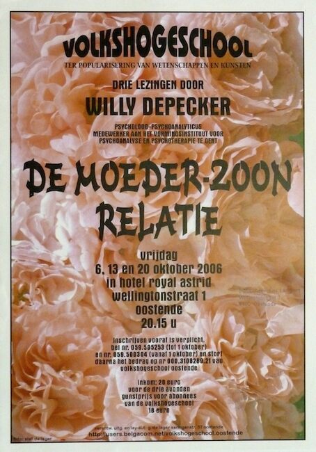 Affiche : Volkshogeschool. De moeder-zoon relatie. Hotel Royal Astrid. 6-13-20/10/2006