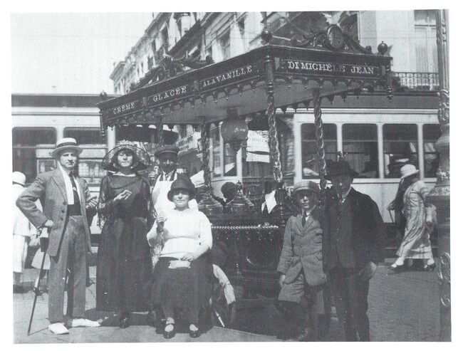 Ostende - L'Hôtel de Ville. - Vooraan een ijscokar van Di Michele Jean. Die hadden altijd een vaste plaats in de stad