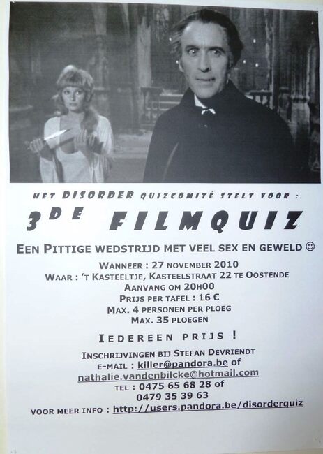 Affiche : Het Disorder Quizcomité stelt voor : 3de Filmquiz. 't Kasteeltje. 27/11/2010