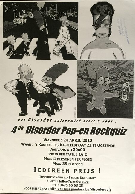 Affiche : 4de disorder pop-en rockquiz. Het disorder quizcomité. 't Kasteeltje. 24 april 2010