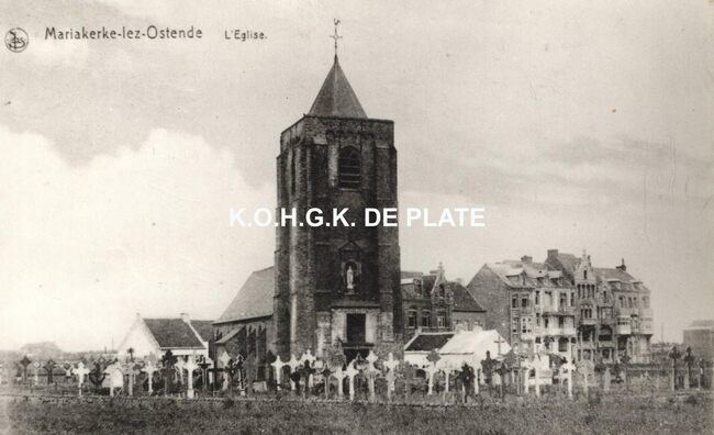 Nels. Edition J. Revyn, 14, rue du Canada, Bruxelles. - Ruines de Mariakerke 1914-18. Eglise et Cimetière. The ruines at Mariakerke 1914-18. The church and the cemetery. - In december 1914 had de Duitse bezetter de toren…