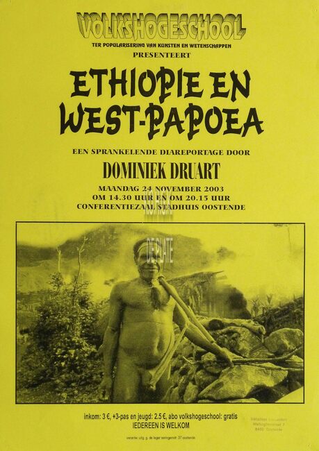 Affiche : Volkshogeschool. Ethiopië en West-Papoea. Conferentiezaal stadhuis Oostende. 24/11/2003