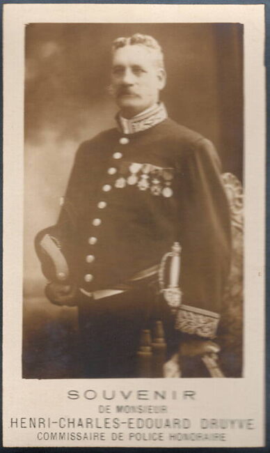 Politiecommissaris Druyve in galakledij vòòr de Tweede Wereldoorlog. Druyve werd opgevolgd door Maurice Seys AFMETINGEN INTERN : 74,5 x 59,5 cm AFMETINGEN EXTERN : 83 x 68 cm ingekaderd