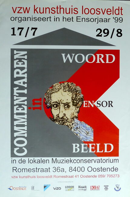 Affiche : vzw Kunsthuis Loosveldt. Commentaren in woord en beeld Ensor. Muziekconservatorium. 17/07-29/08/1999