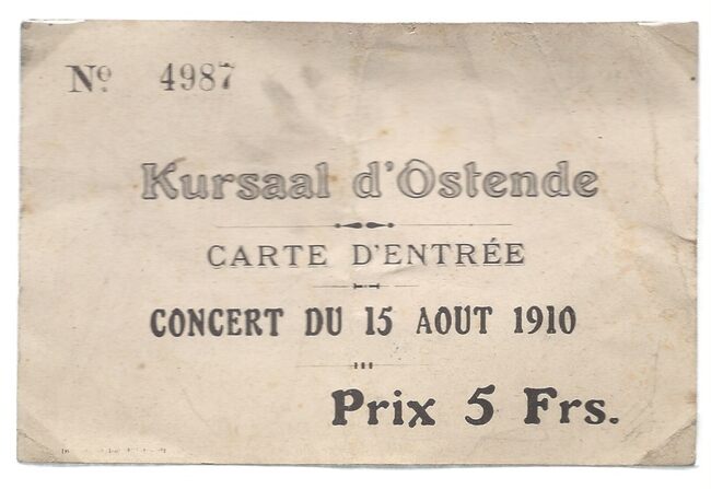 Entreebiljet. Concert. Kursaal Oostende. 15/08/1910