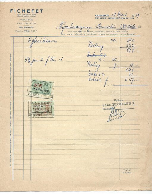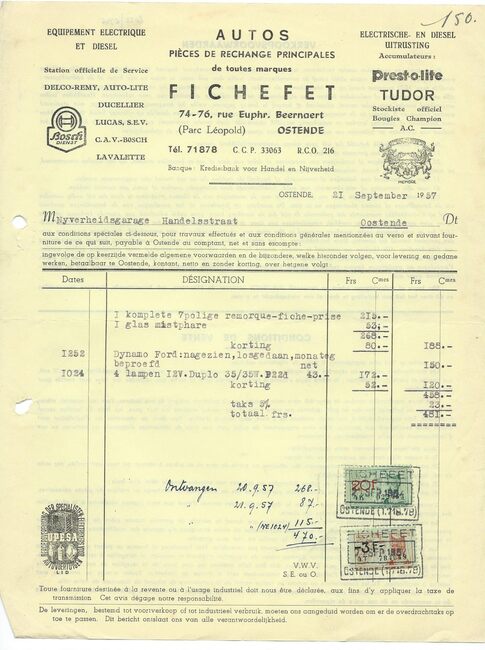 Formaat : 13 x 18 cm. - Personeelsfeest van de firma "Fichefet" in het lokaal "Prins Boudewijn", Sint-Sebastiaanstraat 22. Vereremerkte werknemers en hun familie. Paul Fichefet, links naast mevrouw,…