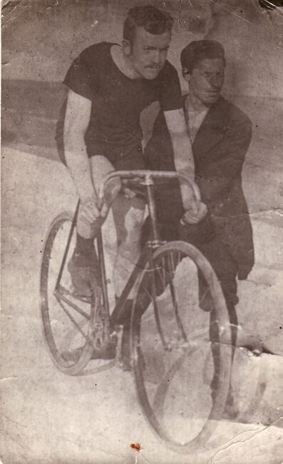 FOTO. 4 oude foto's van renners met fiets waarvan renner L.Barrat
