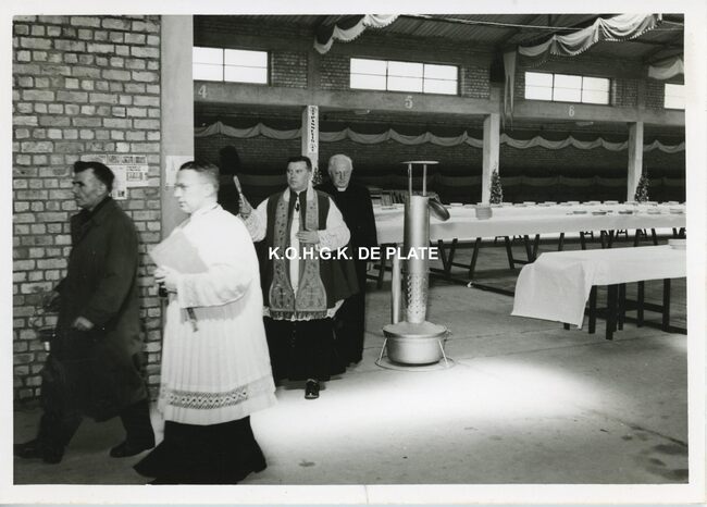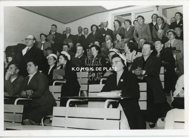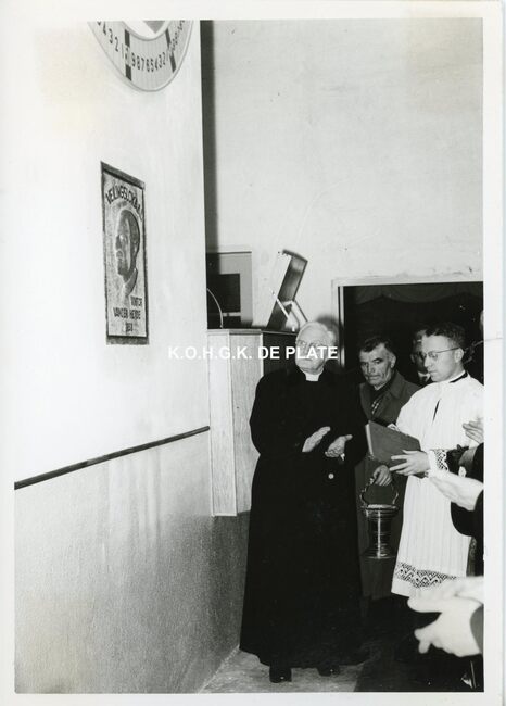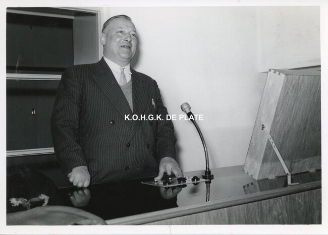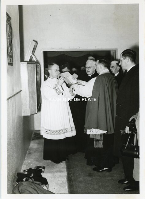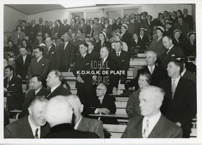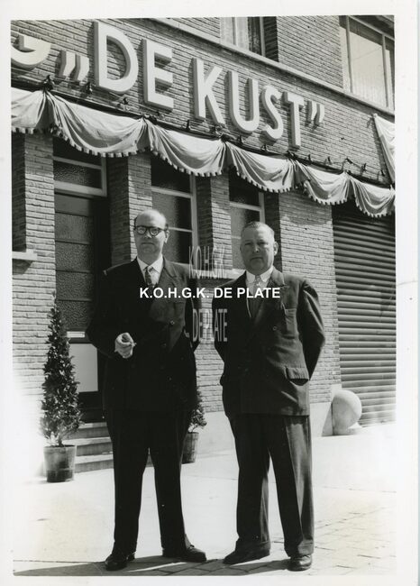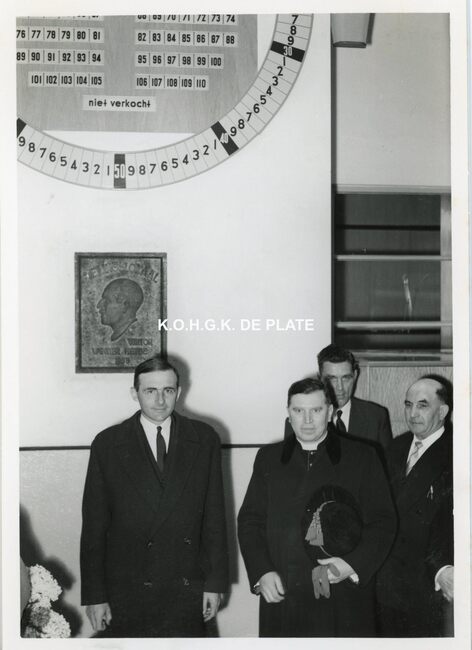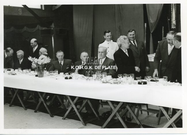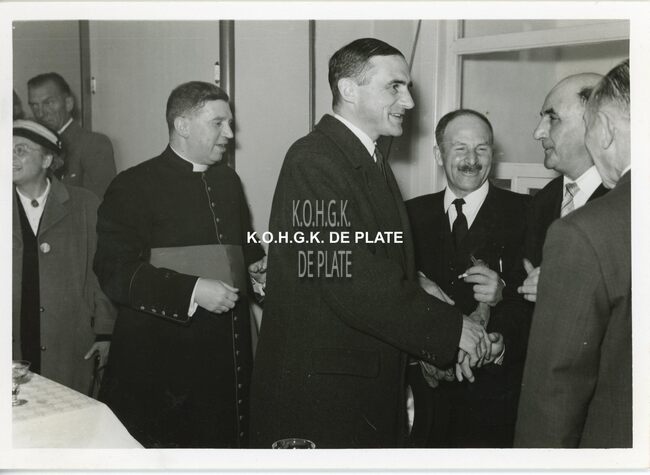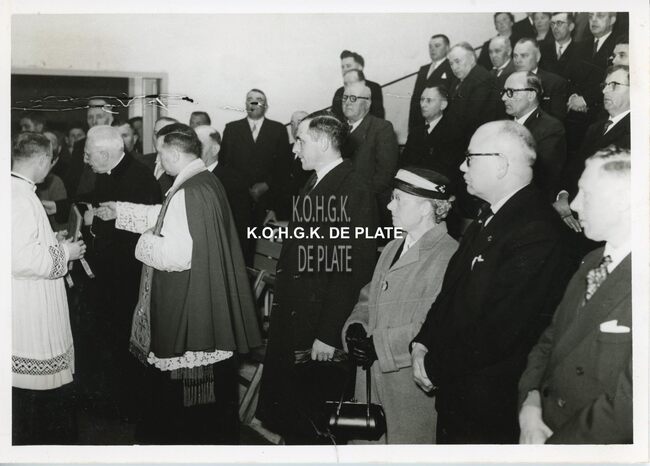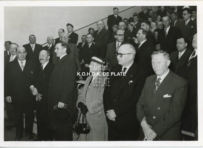 FOTO LUCEERSTE STEENLEGGINGENCASINO-KURSAAL (1953)BUISSERET AUGUSTE (1888-1965) (MINISTER VAN OPENBARE WERKEN)SERRUYS HENRI LOUIS EMILE DESIRE (1888-1952) (POLITICUS BURGEMEESTER)VAN GLABBEKE ADOLPHE (1904-1959) (BURGEMEESTER)VAN OUTRYVE D'YDEWALLE PIERRE (1912-1997) (GOUVERNEUR)EYSKENS GASTON (1905-1988) (POLITICUS)