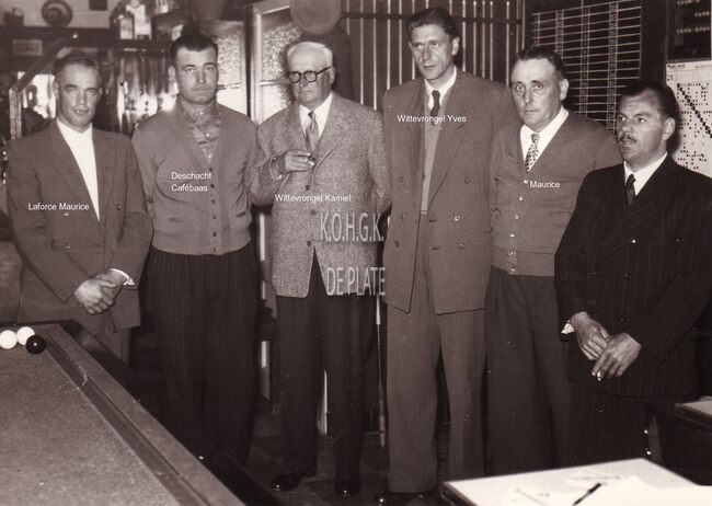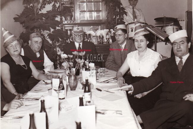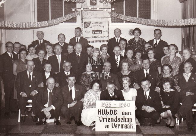 FOTO LUCBLIJDE INTREDESOOSTENDE ; 1959ALBERT II (KONING DER BELGEN)PAOLA (KONINGIN DER BELGEN)PIERS JAN (1920-1998) (BURGEMEESTER)KONINKLIJKE VILLASURMONT MICHEL (1891-1975) (STADSSECRETARIS)VAN CAILLIE FRANCOIS (1909-1971) (NOTARIS POLITICUS)DEHOUCK KAMIEL (1908-1992) (POLITICUS)EDEBAU HENRI (1886-1964) (POLITICUS)