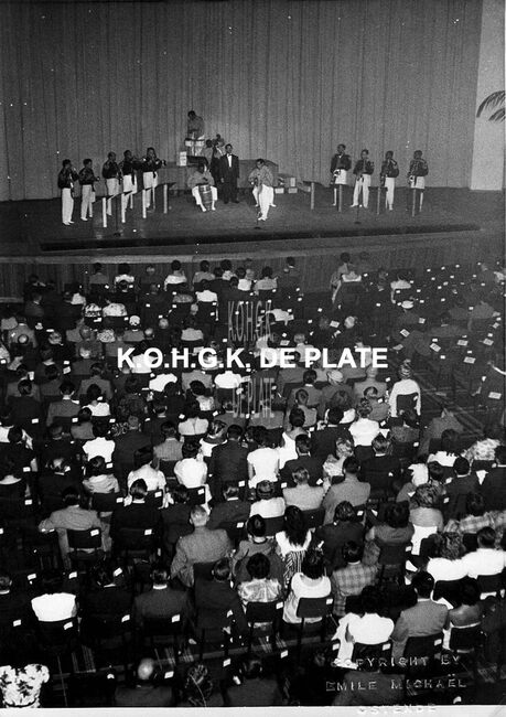 Formaat : 13 x 18 cm. - De genodigden op zaterdag 06/07/1955 voor de overhandiging der prijzen. De jongens van het Koninklijk Werk IBIS vormen een erehaag. De opbrengst van de twee gala avonden werd geschonken aan het…