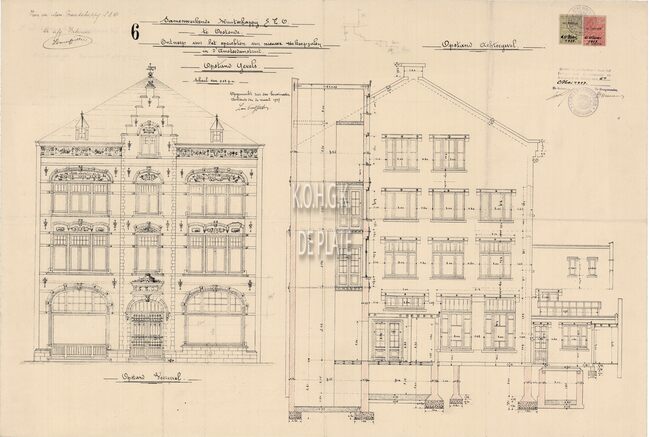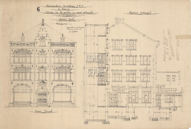 Detailplan van de voorgevel. Datering : 1950 (onder voorbehoud) (Marcel Calcoen)