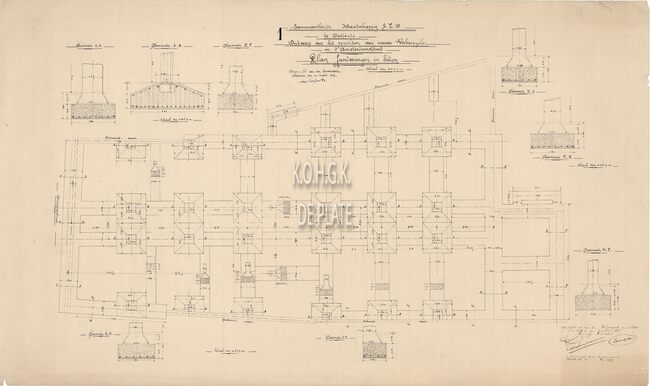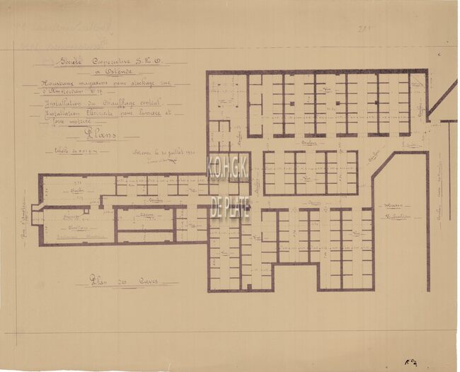 Plan : SEO. Amsterdamstraat 37. Magazijnen. Centrale verwarming en electrische inrichting kelders