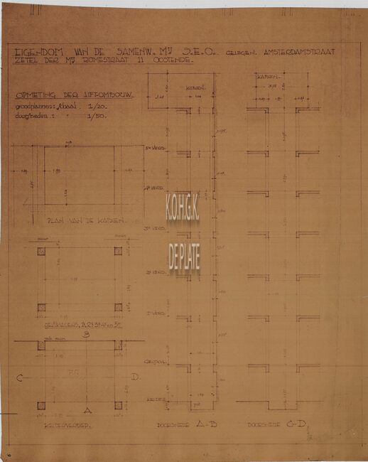 Plan : opmeting verbouwen lift. Datering : 1950 (onder voorbehoud) (Marcel Calcoen)