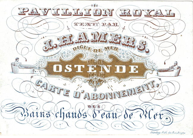 Formaat : 8,5 x 12,3 cm. - Pavillion Royal tenu par J.Hamers - Digue de Mer -Ostende. Carte d'Abonnement des Bains chauds d'eau de Mer.