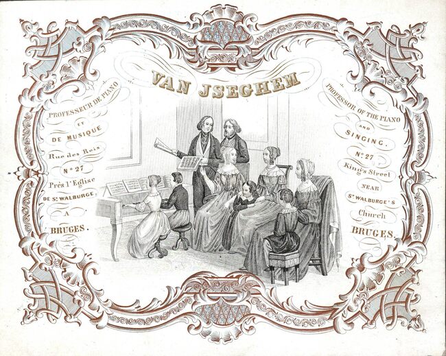 Afmeting : 15,5 x 19 cm. - Van Iseghem, Professeur de piano et de musique, Rue des Rois N° 27 Prés L'Eglise de St Walburge a Bruges. Professor of the piano and singing N° 27 King's street near St Walburge's…