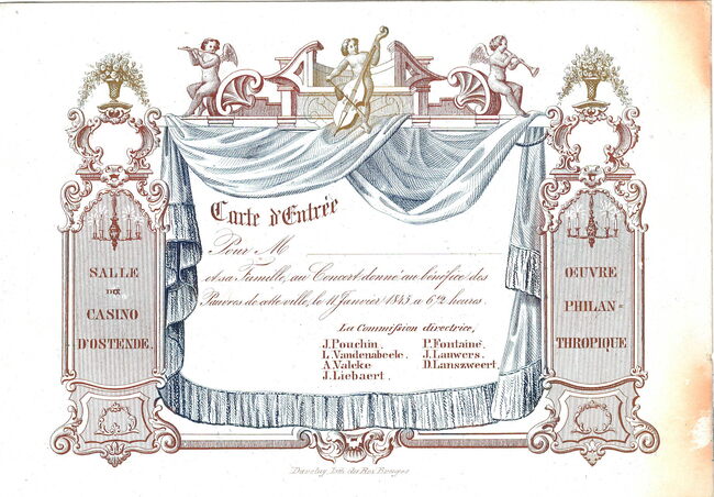 Formaat : 11 x 15,6 cm. - Salle du Casino d'Ostende. Carte d'Entrée. Oeuvre Philantropique