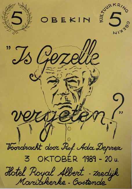Affiche : Kultuurkring Obekin." Is Gezelle vergeten?". Hotel Royal Albert. 3/10/1989