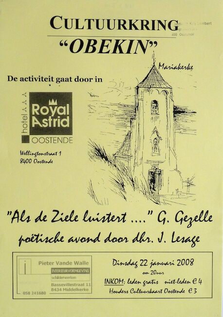 Affiche : Cultuurkring Obekin. Als de Ziele luistert... G. Gezelle. Hotel Royal Astrid. 22/01/2008.