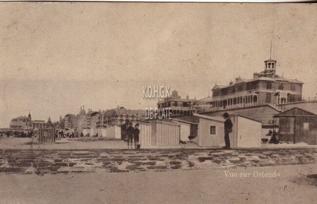 Formaat : 13 x 18 cm. - De noordgevel van de vierde Kursaal langs de Albert I-promenade, gezien vanaf een golfbreker op het Groot Strand.