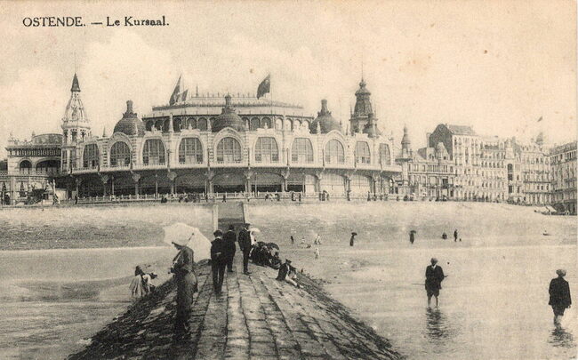 Ostende - Le Kursaal. - Bijgekleurde kaart.