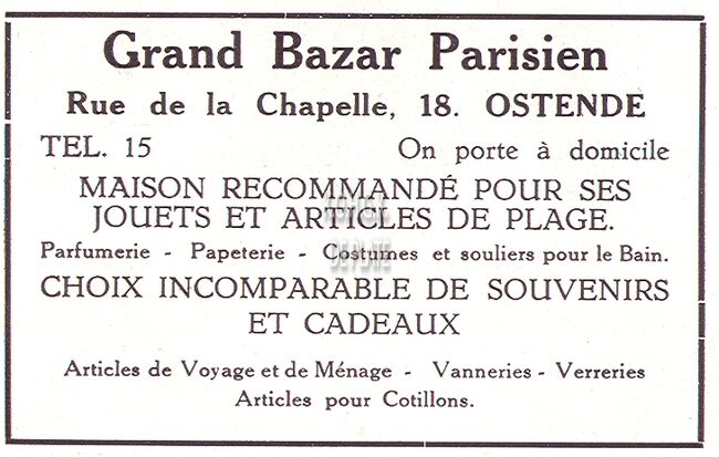 Advertentie : Grand Bazar Parisien. Kapellestraat 18, Oostende