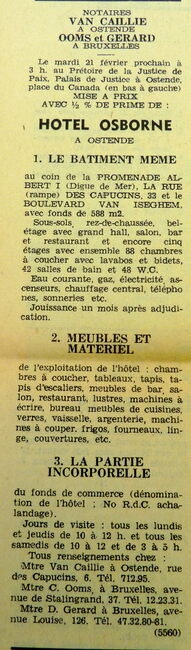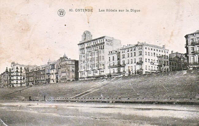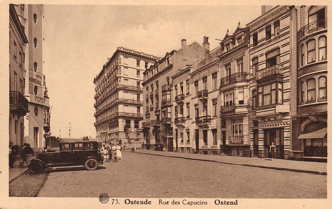 Rue des capucins Albert n° 73. Links het hotel Mondial. Boven rechts hotel Osborne. Het had 52 kamers met lopend water, centrale verwarming en 24 badkamers en was het ganse jaar open.