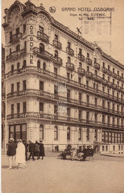 Nels. - Osborne Hôtel. Digue de Mer Ostende. - Let op de zwanen, die de smeedijzeeren balkons versierden.