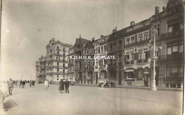 Formaat : 11 x 18 cm. - De Albert I-promenade ten oosten van het Kursaal. Wat verder in beeld, op de hoek met de Kapucijnenstraat het "Grand Hotel Osborne"