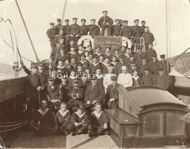 Formaat : 17 x 22 cm. - De bemanning en leerlingen van het schoolschip "Ville d'Anvers" te Bergen