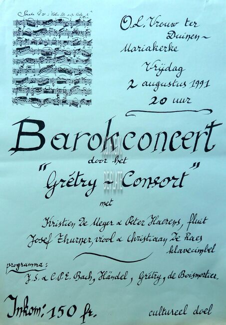 PROGRAMMA'SONZE LIEVE VROUW KONINGINKERK MARIAKERKEHAERENS PETER (FLUITIST)VANDENABEELE DYMPHNA (MUZIKANTE)DEWULF BERNARD ( VIOLIST)VANBALLENBERGHE NATHALIE (VIOLISTE)DIERENDONCK HARALD (VIOLIST)BEELAERTS LIESEMARIE (CELLISTE)DE RAES CHRISTIAAN (MUZIKANT)MUZIKANTENGRÉTRY-CONSORT (MUZIEKGROEP)MUZIEKGROEPENPEIRE SARAH (SOPRAAN)
