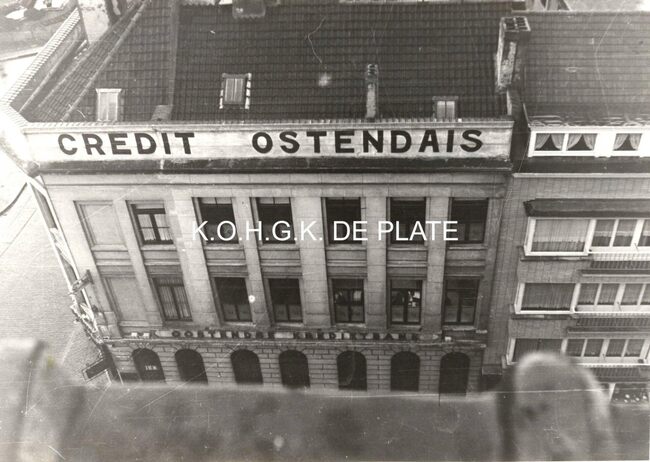 Afbraak van de "Kredietbank", gelegen op de hoek van de Kapellestraat (links) en de Wittenonnenstraat (rechts). Het nieuwe bankgebouw werd ingehuldigd op 5 november 1976