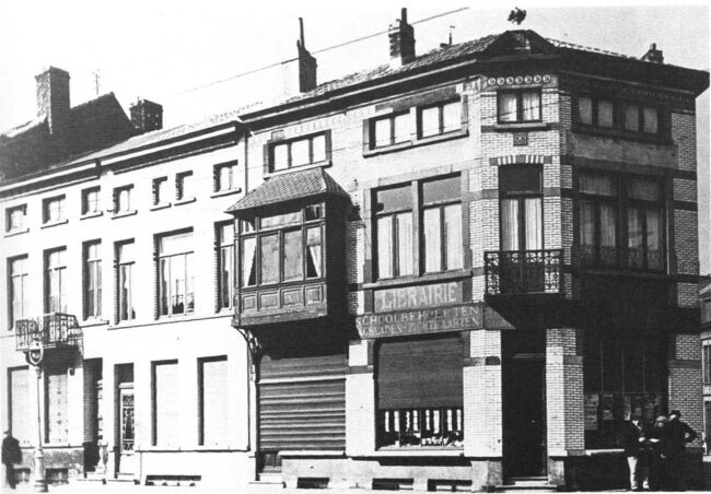 FOTO'SAARTSHERTOGINNESTRAATCORMAN BOEKHANDELSIMENON GEORGES (1903-1989) (AUTEUR)BRECHT BERTOLT (1898-1956) (AUTEUR TONEELREGISSEUR)HEMINGWAY ERNEST (1899-1961) (AUTEUR)ENSOR JAMES (1860-1949) (KUNSTSCHILDER)COLETTE SIDONIE GABRIELLE (1873-1954) (AUTEUR)GEVELSCHILDERINGENLABISSE FELIX (1905-1982) (KUNSTSCHILDER)HANDEL ; BOEKHANDELS
