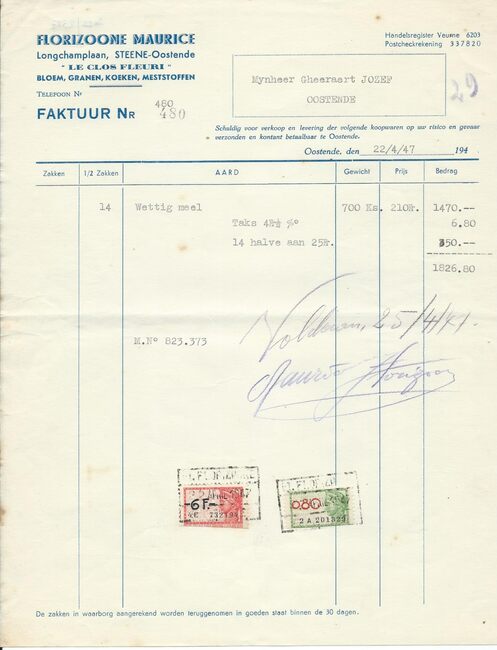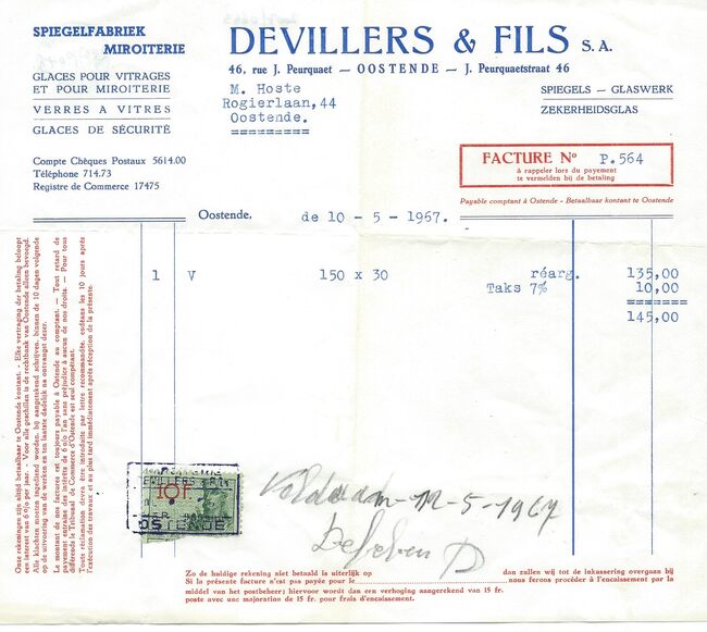 Officieel verdeler gewest Oostende Peugeot. 203 / 403. - Station Service - Wisselstukken