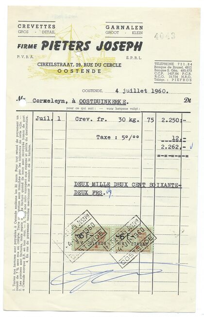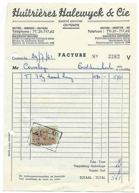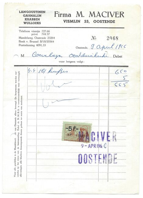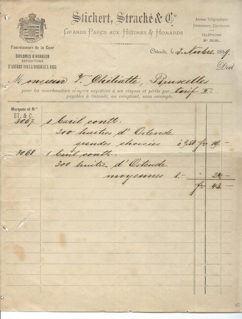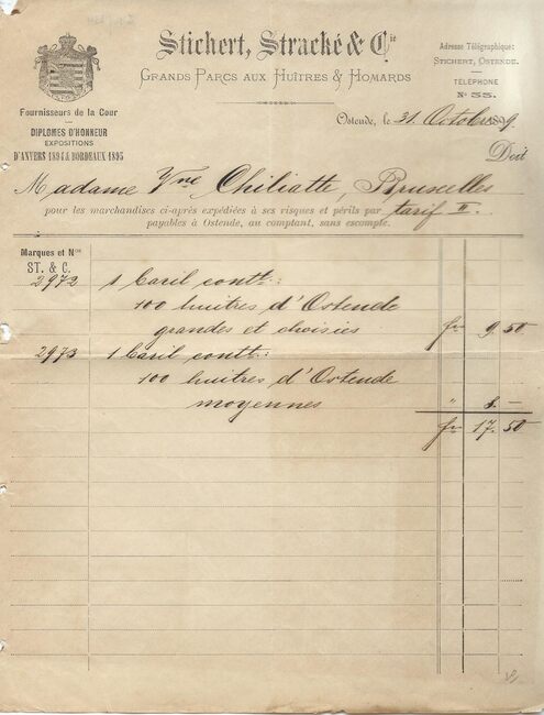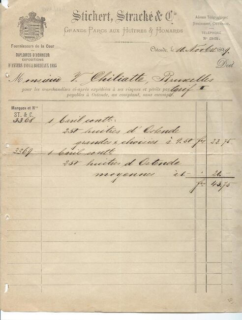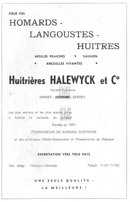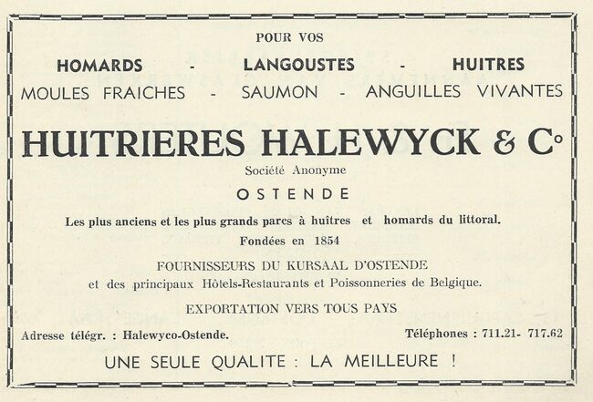 Spécialité des Huitres d'Ostende. Homards vivants. Importation. Exportation.