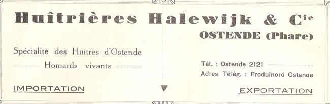 Oesterputten Halewyck en C°, nv. - Opgericht in 1854 of 1856 door M. Halewyck-Royon. Het bedrijf bleef in de familie en breidde zich steeds uit, o.m. door vestigingen te Nieuwpoort en te Zeebrugge. In 1936 werd de…