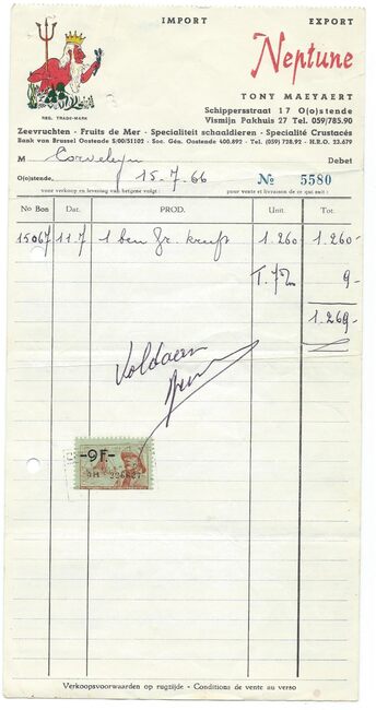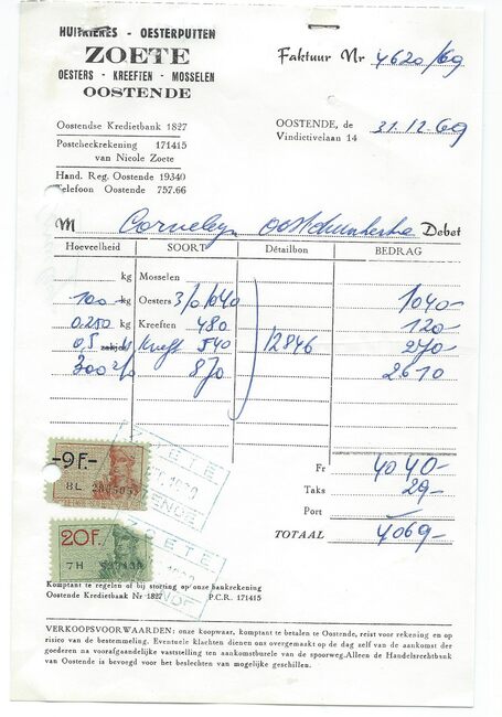 Zeevruchten - Specialiteit schaaldieren. - Import - Export. - Adres : Schippersstraat 17, Oostende