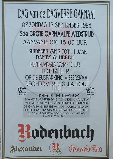Affiche : Handelaarsbond van de Kaai. Dag van de Dagverse Garnaal. 2de Grote Garnaalpelwedstrijd. Busparking Visserskaai. 17/09/1995