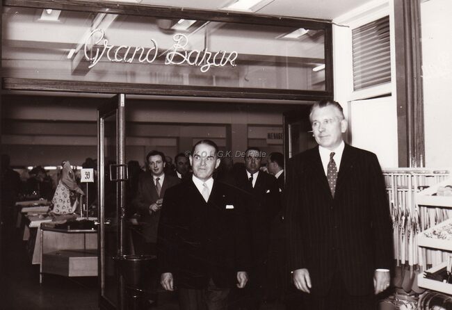 Burgemeester Adolf Van Glabbeke op de opening van de "Grand Bazar" in de Kapellestraat.
