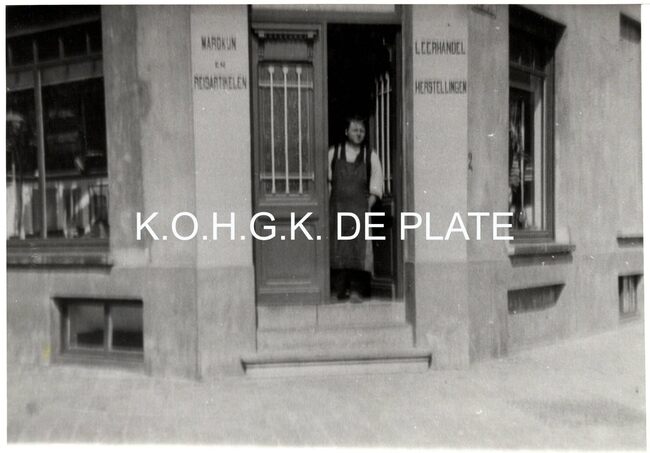 Formaat : 13 x 18 cm. - Men deed er ook herstelling van lederwaren en verkochten reisartikelen. Nu staat er een appartementsgebouw op Timmermansstraat 2