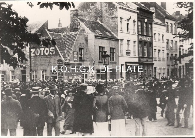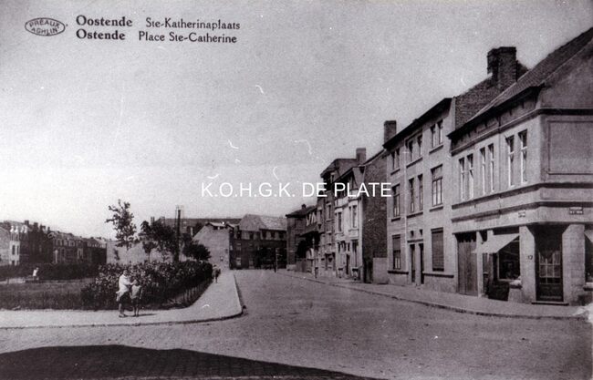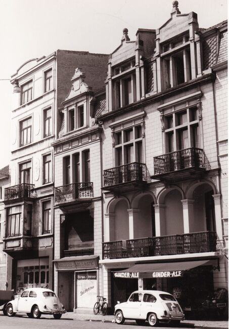 Formaat : 12,5 x 9 cm. - Het hoekhuis was vroeger de viswinkel Wellecom(me) Pierre en er naast vogelhandel Goethaels Maurice (tot 1981).