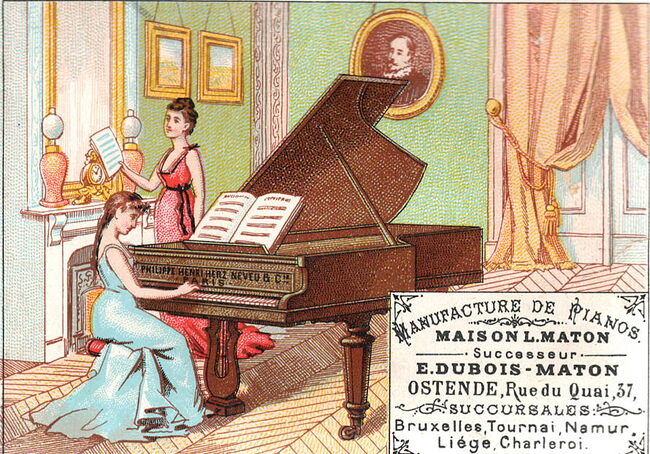 Formaat : 8 x 11 cm. - Manufacture de pianos. Maison L.Maton. Successeur E. Dubois-Maton. Ostende, Rue du Quai, 37. Succursales : Bruxelles, Tournai, Namur, Liége, Charleroi