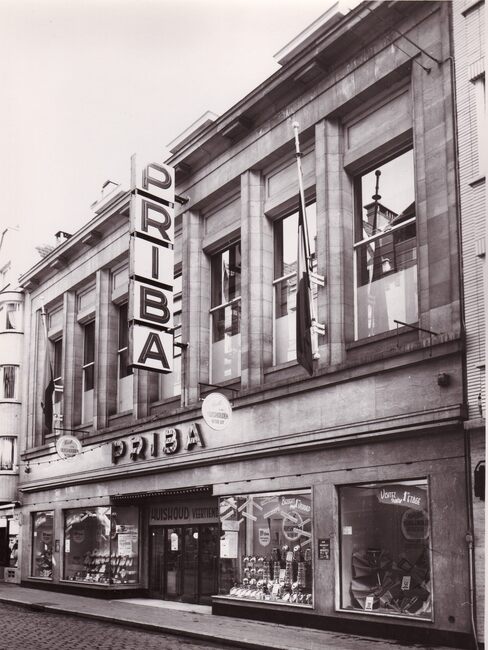 Formaat : 24 x 18 cm. - Het grootwarenhuis Priba in de Kapellestraat 40-42, tussen de Ooststraat en Sint-Paulusstraat. Een der bijhuizen van de nv "Société Anonyme Belge des Magasins Uniprix-Priba".…