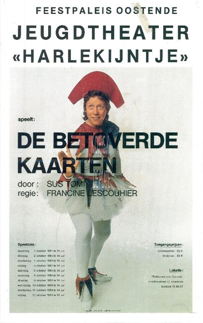 Affiche : Jeugdtheater "Harlekijntje". De betoverde kaarten. Feest- en Kultuurpaleis Oostende. 2,4,5,6,8,9,10,11,12 oktober 1984