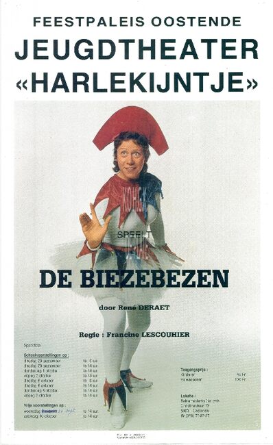 Affiche : Jeugdtheater 'Harlekijntje'. 'De Biezebezen'. Feest- en Kultuurpaleis. dinsdag 29 sept. tot 9 okt. ....(?)