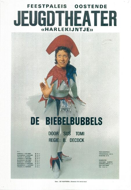 Affiche : Jeugdtheater Harlekijntje. De biebelbubbels. Feest- en Kultuurpaleis Oostende. 2,4,5,6,8,9,10,11,12 oktober....(?)