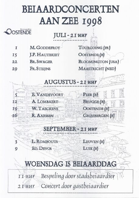 Affiche : Beiaardconcerten aan zee 1998. Stad Oostende. juli - augustus - september 1998 [Programma]