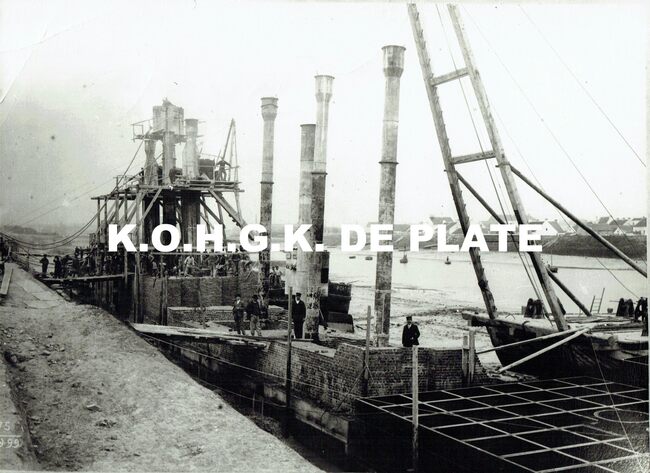 Formaat : 12,5 x 17,5 cm. - Het bouwen van de kaaimuur van de Cockerillkaai (niet zeker, maar vermeld op de foto).