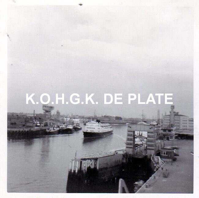 Formaat : 13 x 18 cm. - De carferry Prinses Josephine Charlotte aangemeerd bij de tweede laadbrug aan de Sir Winston Churchillkaai. Zicht op de stad