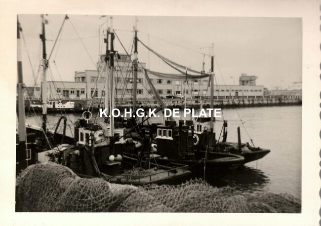 Kruger. - Vissersvaartuigen gemeerd in het Montgomerydok. Het gebouw van het Loodswezen gelegen aan de Sir Winston Churchillkaai 2