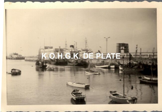 Formaat : 10 x 15 cm. De patrouilleboot ligt in het Montgomerydok voor het loodswezengebouw